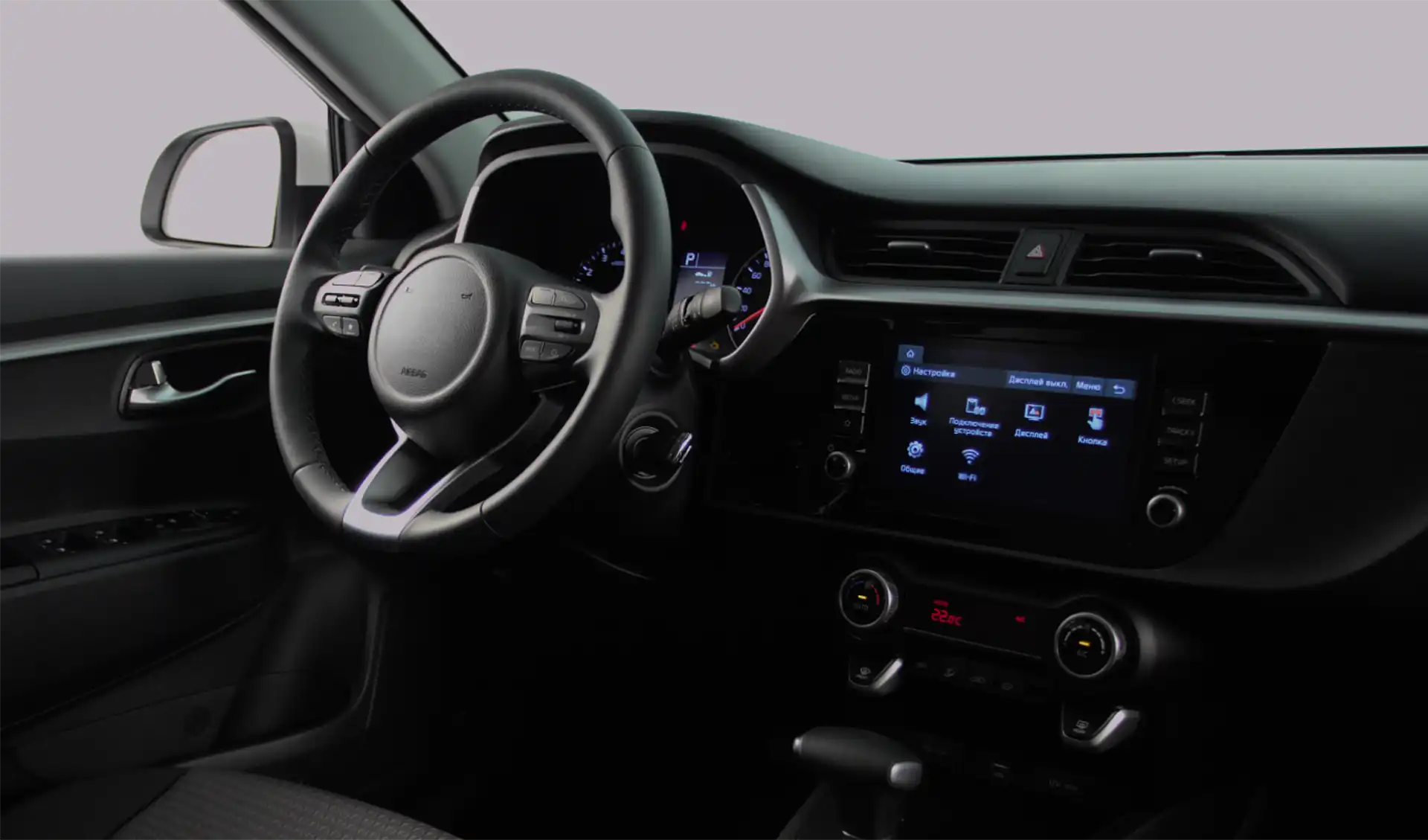 Салон базовой версии отделан качественными материалами или искусственной кожей. Руль и переключатель передач в кожаной оплетке. В комплектацию SOLARIS входит: климат-контроль, подогрев сидений и руля, электропривод складывания боковых зеркал, 8-дюймовый экран развлекательной системы с поддержкой любой ОС.